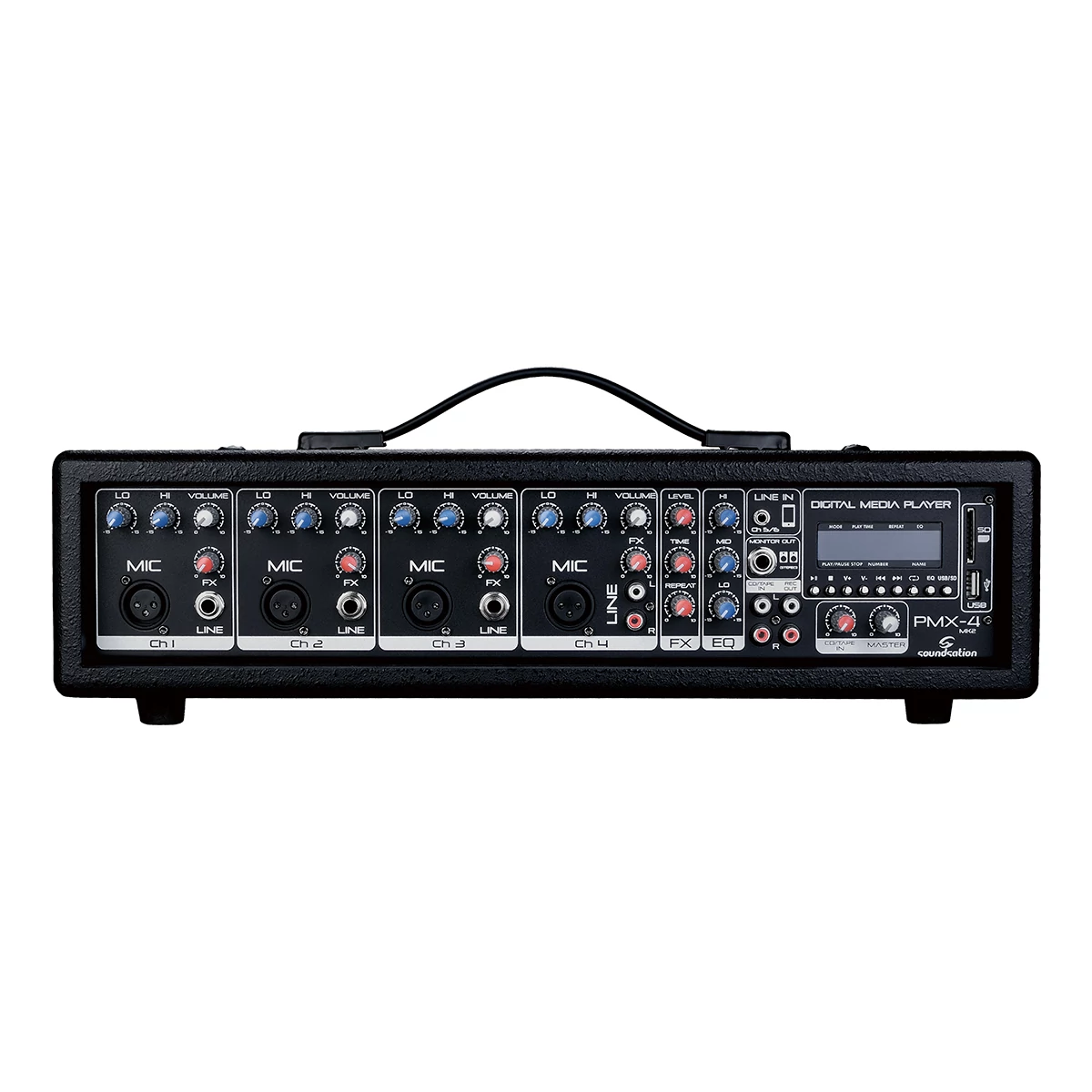 - A PMX-4 MKII-t úgy tervezték, hogy hatékony erőforrás legyen élő és oktatási célokra. A felhasználóbarát felület a termék egyik legjobb tulajdonsága, és lehetővé teszi a készülék gyors és egyszerű konfigurálását. A 6-csatornás aktív keverő lehetővé teszi mikrofonok, hangszerek vagy bármilyen más audio berendezés csatlakoztatását az XLR bemeneteknek köszönhetően a CH1-4-en és a 6,3mm-es jack bemeneteknek a CH1-3-on. A sztereó RCA bemenetek a CH4-en és a 3,5mm-es jack bemenetek a CH5/6-on, amelyek lehetővé teszik a számítógép, okostelefon, hordozható MP3-lejátszó stb. csatlakoztatását.