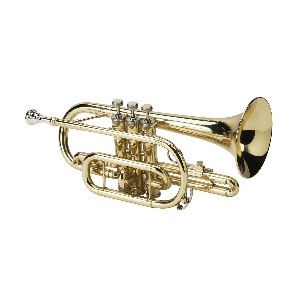 - The cornet is an instrument with many similarities with the trumpet, but due to its conic bore, the sound is much mellower and warmer. SCOR-10 was conceived to feature easy emission and perfect intonation. Built in brass with gold lacquered finish, it's lightweight and compact. Cornet is often the preferred choice by many beginners, being the mouthpiece closer to the piston and thus more balanced. It's often used in Jazz music. Including a full set of accessories, is a great instruments both for students and trumpet players who need the instrument in specific situations.