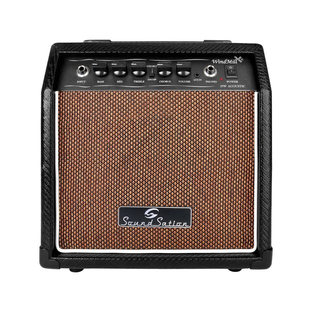 - A Windmill 15 egy kompakt és könnyű, 15W-os akusztikus kombó, amely tökéletes az gyakorláshoz, bárhol is van. A beépített állítható Chorus segítségével gazdagíthatja hangszínét és lejátszhatja kedvenc számait az Aux In segítségével. Ha pedig nem akarod zavarni a szobatársadat, használhatod a fejhallgatókimenetet!