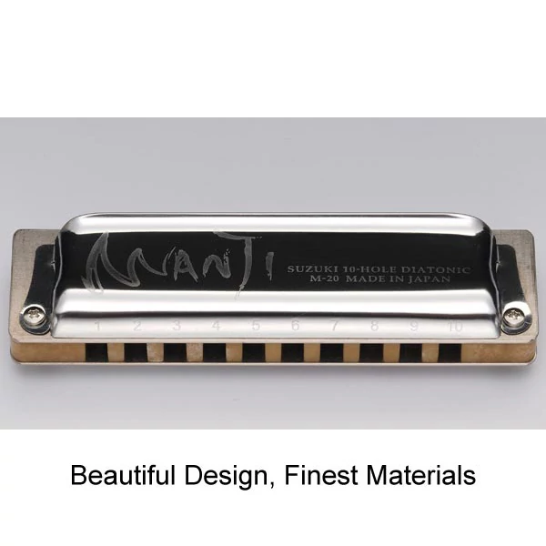 A Suzuki Manji egy forradalmian új, "kompozit" testtel készül, amellyel hangtónusa abszolút megegyezik a tradicionális fa testtel készült szájharmonikák hangtónusával, de nem lép reakcióba a nedvességgel. Óriási hangereje egyedülálló. Rendkívül precíz, könnyen kezelhető, professzionális, 10 hanglyukú, egysoros, diatonikus, dúr-hangolású szájharmonika.