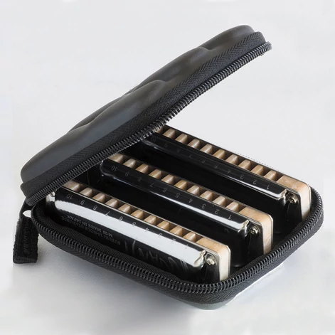 A szett tartalmaz 1db C-, 1db G- és 1db A hangolású Manji szájharmonikát.