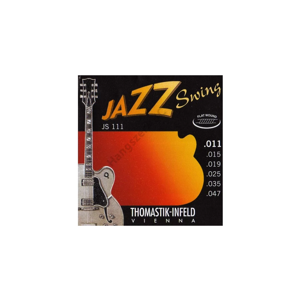 Nikkel borítású, csiszolt jazzhúrkészlet. Méretek: 11, 15, 19, 26, 34, 47.