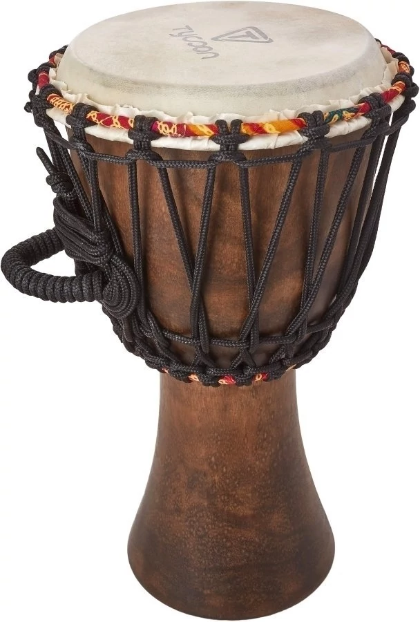 ütőhangszer: djembe, 8" átmérő, African széria, zsinórral hangolható - egy darab ghánai keményfából készült