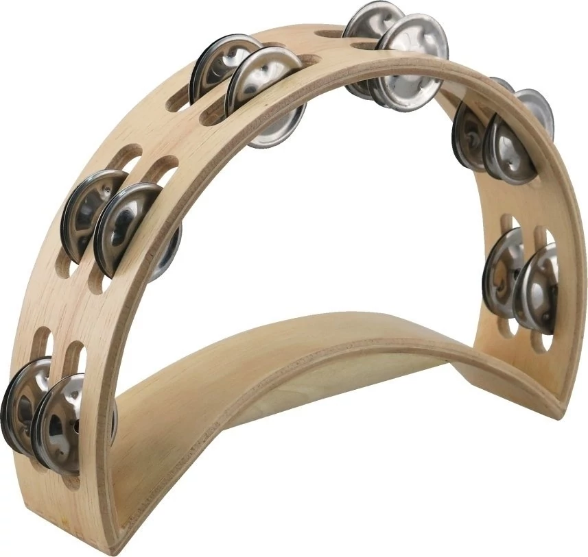 ütőhangszer: csörgőkarika, fából készült, félhold forma, 12 pár csörgő, siam oak kivitel