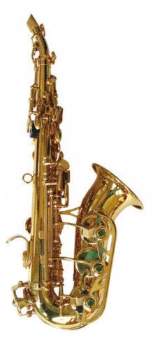 Szopránszaxofon ívelt, lakkozott sárgaréz test + esetben, szíj, tisztítás és kenés - arany lakk