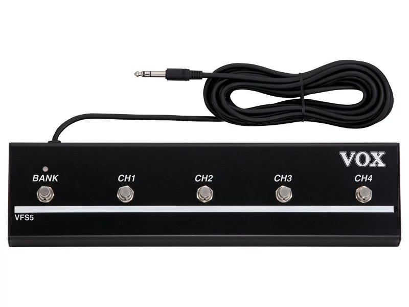 A Vox VFS-5 lábkapcsoló segítségével a Vox VT erősítőkön lábbal válthatod a programokat, be-, illetve kikapcsolhatod a Reverb-et és a többi effektet, valamint vezérelheted azok működési sebességét.