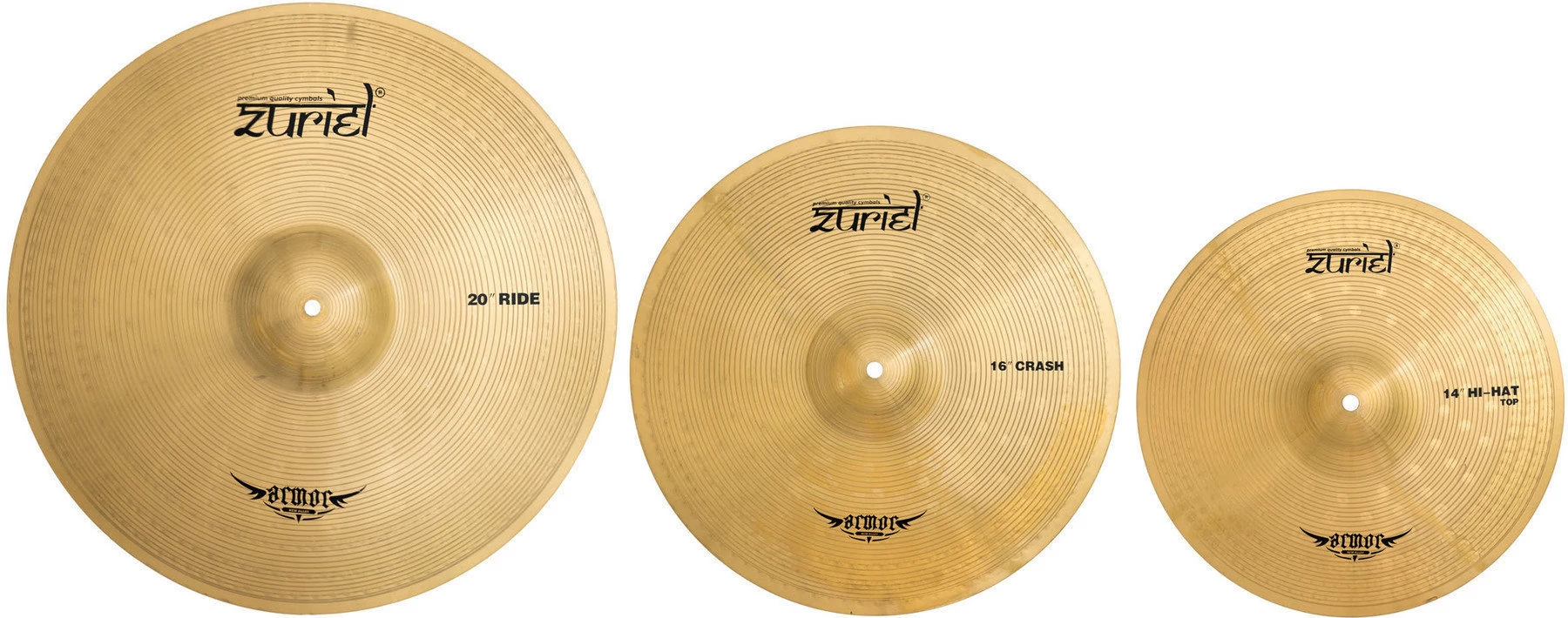 cintányér szett, 14" lábcintányér + 16" Crash + 20" Ride cintányér, Armor széria